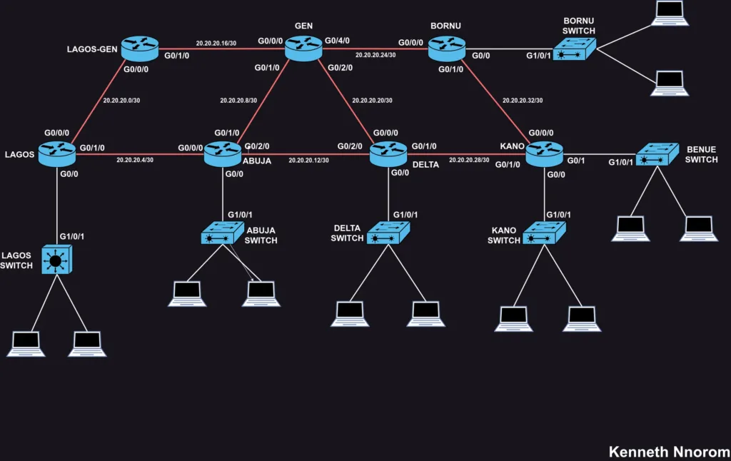 | 1 | Lagos Switch 1 – g1/0/1 | Lagos – g0/0 | 10.10.10.0/28 | 10.10.10.1 – 14 |